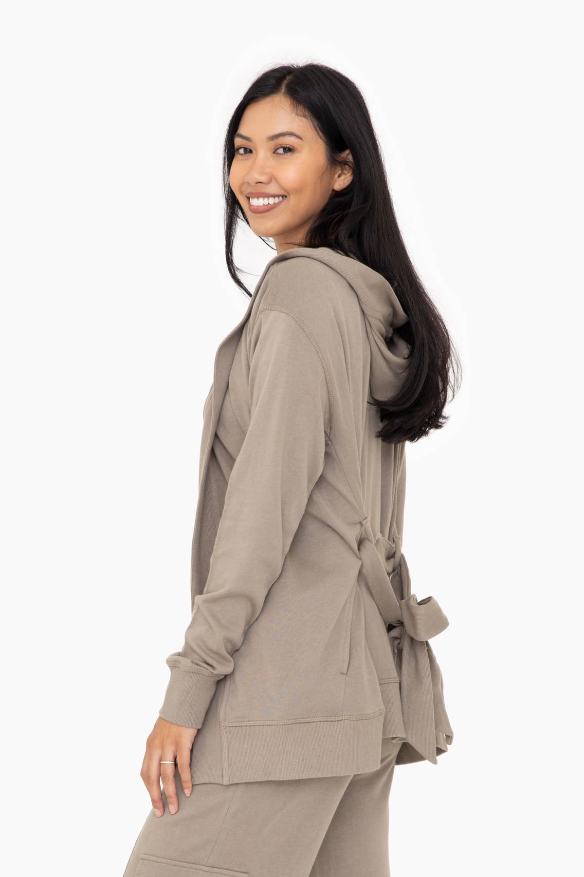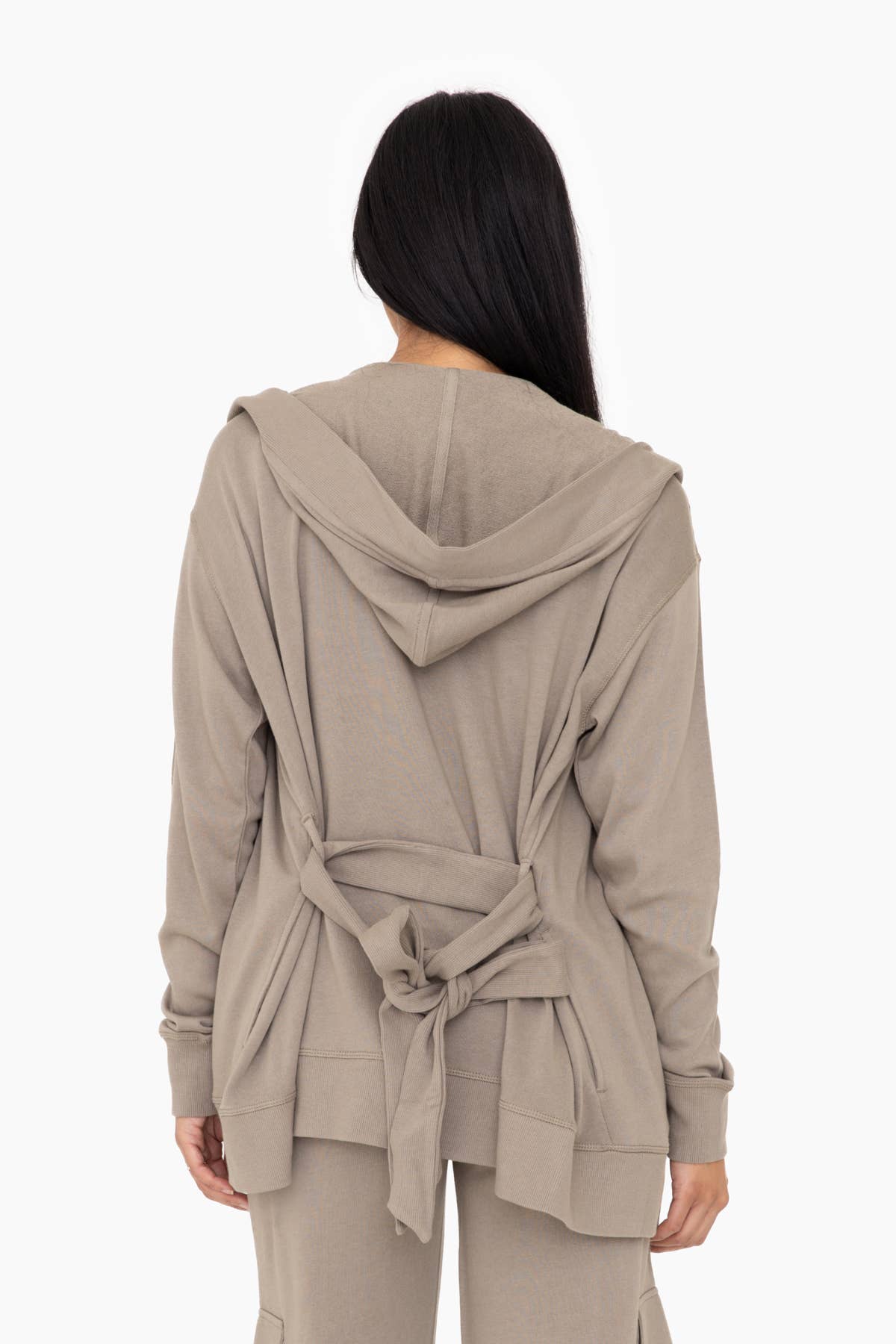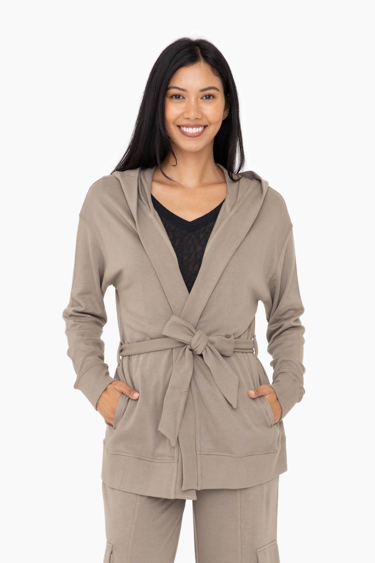 Add some pizazz to your wardrobe with Monob's trendy Green Organic Cotton Blend Wrap Cardigan. Enjoy its luxurious, flowy fit, attached waist tie, and handy pockets. Made with a blend of 51% organic cotton and 49% modal for ultimate comfort.