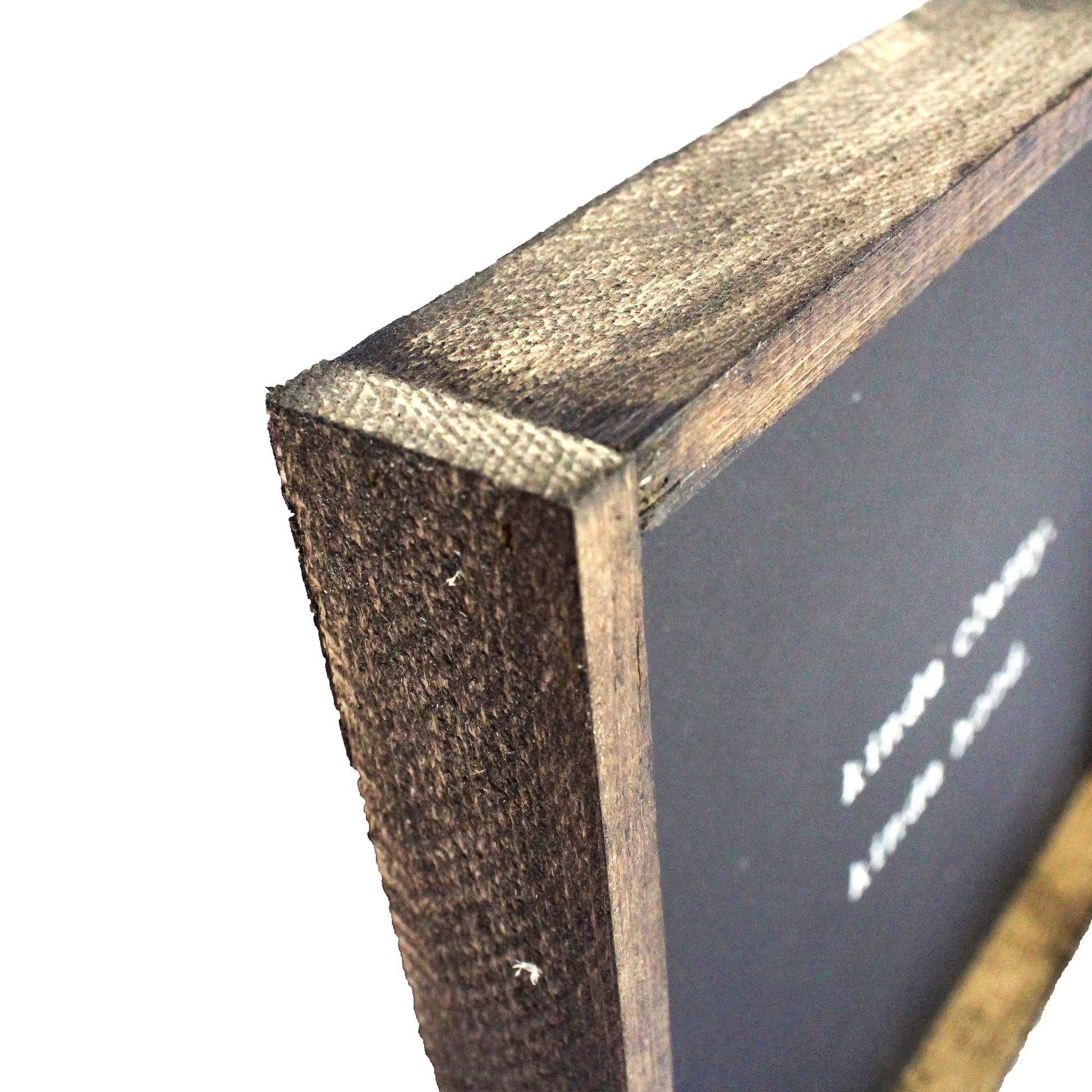 Our frames are made with real pine wood. We expect to see cracks, knots, holes and other imperfections. We believe this brings charm and character to our signs and makes each one truly unique. Our backing is made of recycled material. On the back of every sign we expect to see marks & imperfections that show this sign has already lived a full and happy life! They are not meant to be perfect!