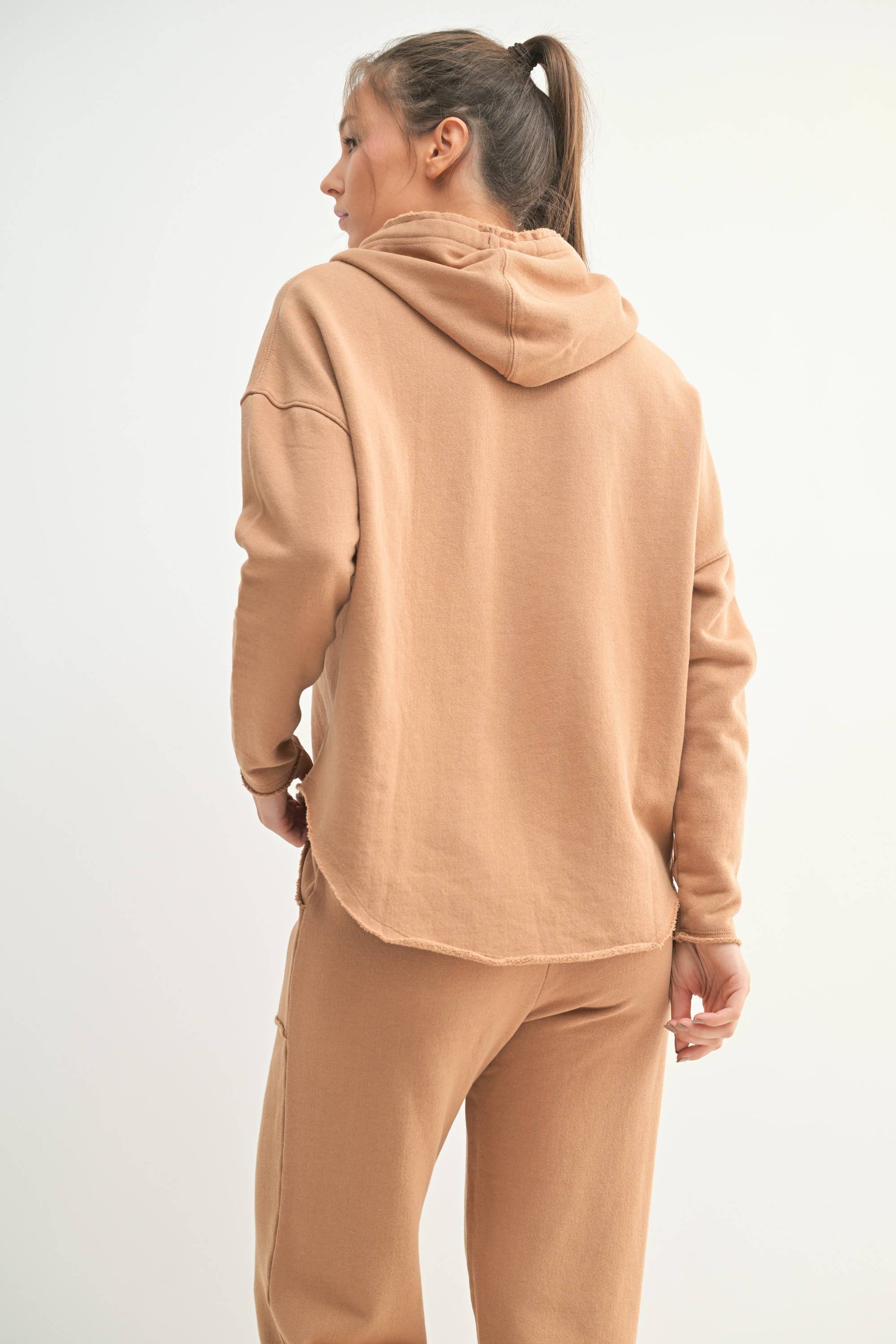Unleash your inner chill with this comfy hoodie. Made of 100% cotton, this loose-fit sweater will keep you warm and cozy. With a big drawcord and raw-edge hem, it exudes a certain coolness factor. Plus, it's been garment-washed for that extra softness. Perfect for running errands, post-gym lounging, or just everyday relaxation. 100% cotton.