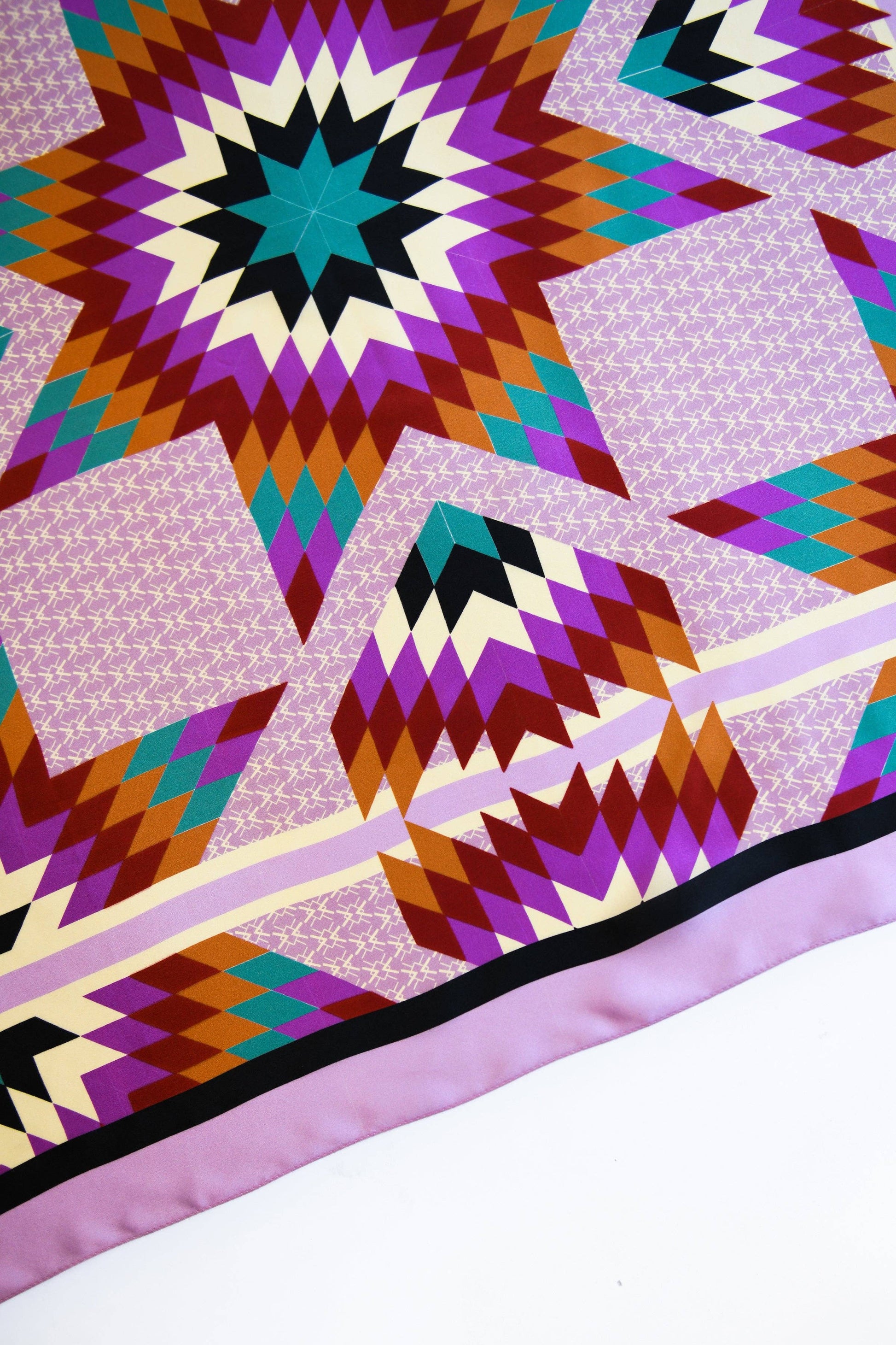 Our new silk scarves are inspired by the Star Quilt - a Native American cultural icon.