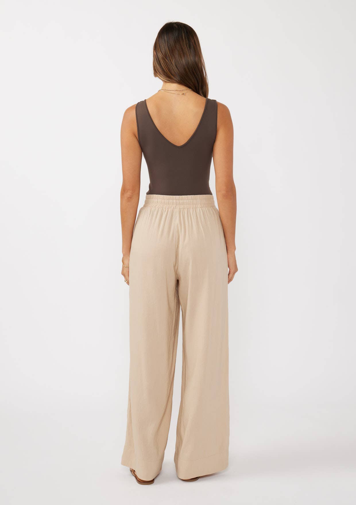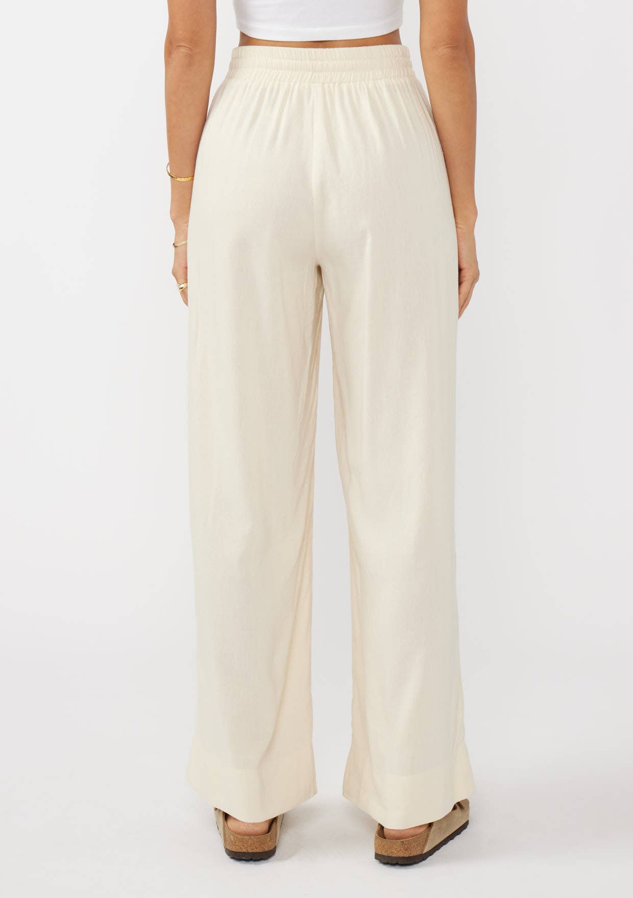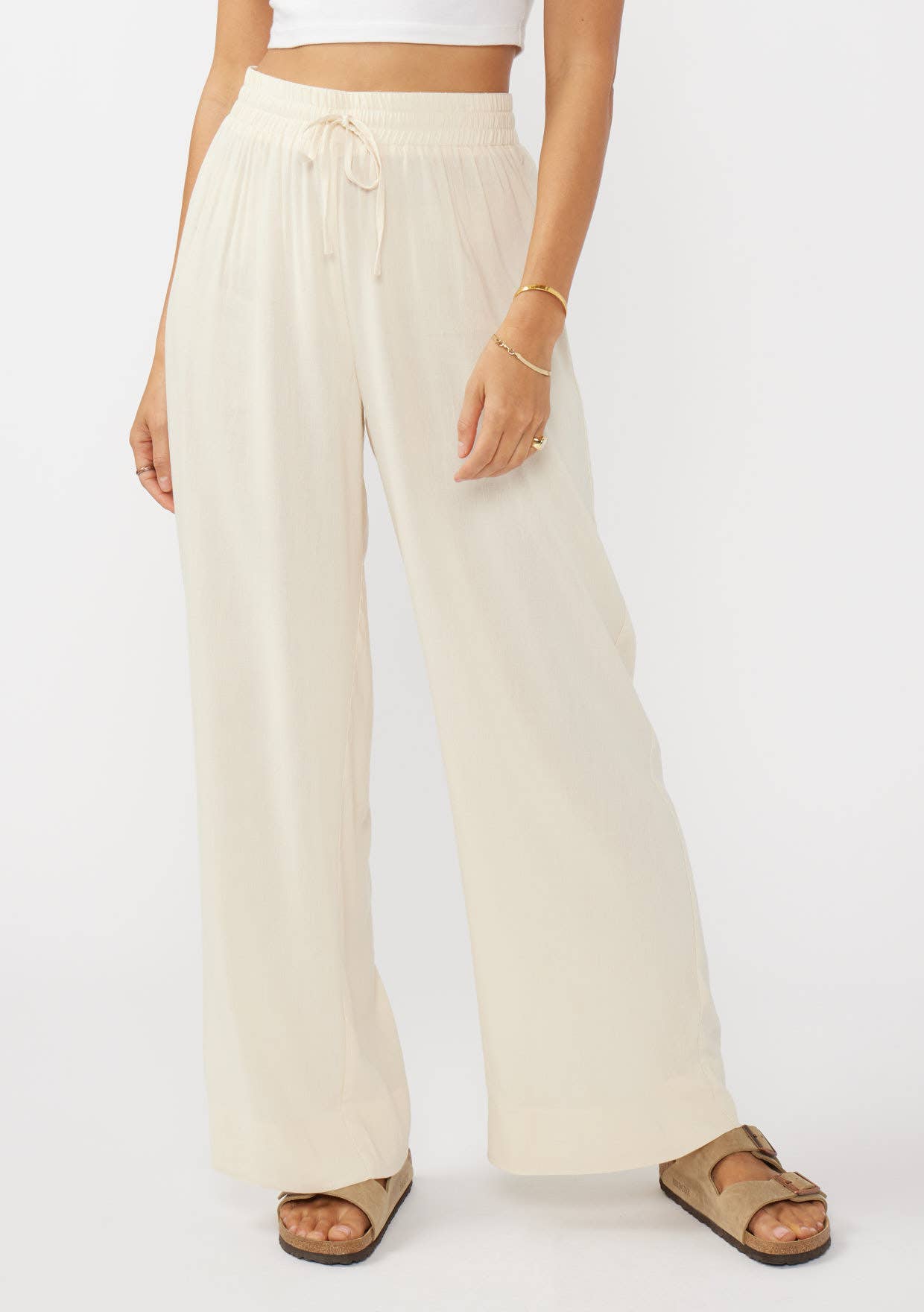 Ruffled Waist Washed Linen Cotton Wide-Leg Pants