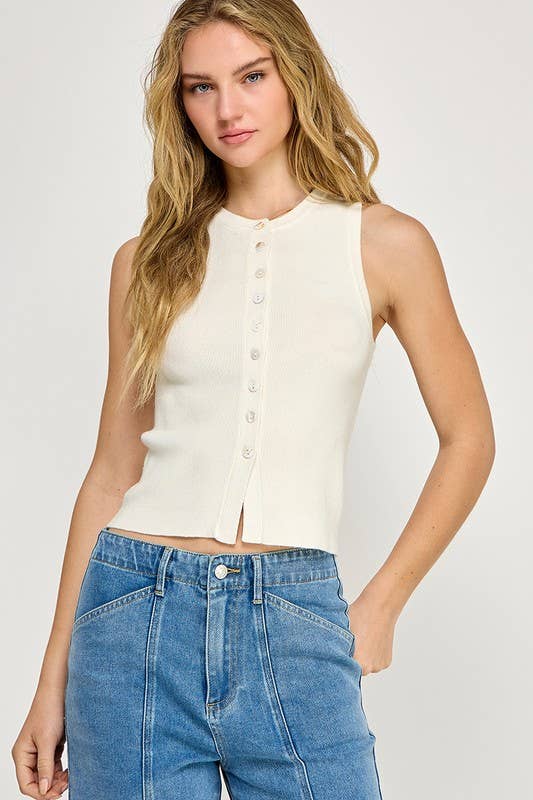 Stay cozy and chic in the Buttoned Knit Top with this rounded neckline, front button closure, and stretch knit top. Perfect for those balmy nights, this top is a versatile addition to your nighttime wardrobe.