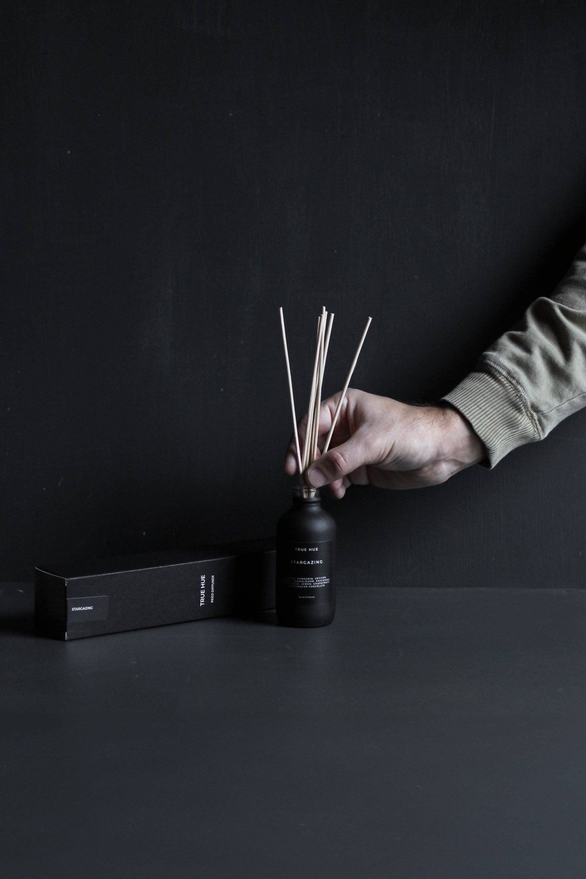 Notes: Mandarin + Vetiver Lying on the cool grass under meteor showers. Stars dash against the dark blue atmosphere. All things wild have gone to sleep. Mandarin, vetiver root, and sandalwood. Our 3.75 fl oz, phthalate-free formula is an easy and long-lasting alternative to fill your space with fragrance. Our scents are formulated with fine fragrance oils (all are Prop 65 and I.F.R.A. approved). Flip over reed sticks every 1-2 weeks to enhance the output of fragrance. Bottle lasts between 2 - 3 months. Comes with 7 rattan reed sticks. *Our top selling fragrance. Measurements: Box Size: 2" L X 2" W X 10.25" H Bottle With Reeds Size: 1.9" D X 10" H
